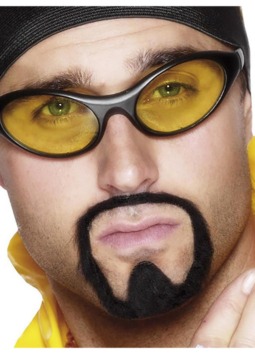 Ali G style 1990's rapper glasses with black frame and yellow tinted lenses.