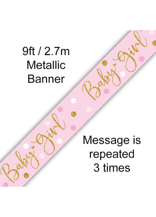 Baby Girl pink dotted holographic banner (which can be cut) measuring 9 ft (2.74 metres).