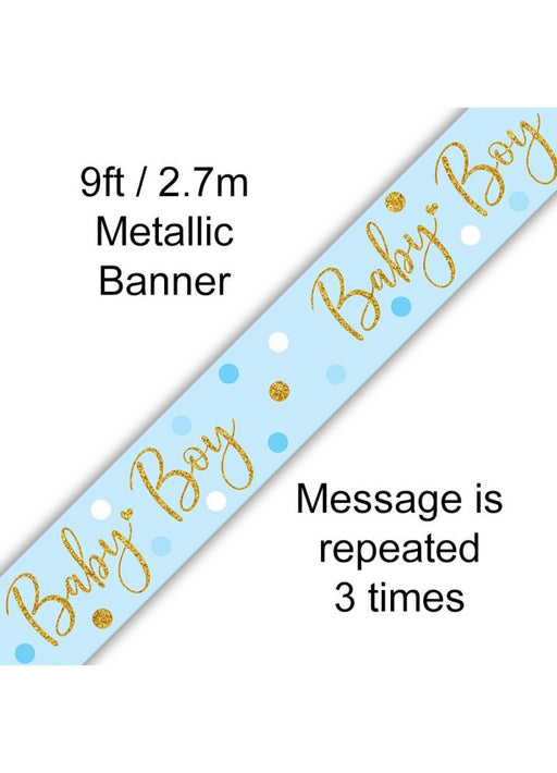 Baby Boy blue dotted holographic banner (which can be cut) measuring 9 ft (2.74 metres).