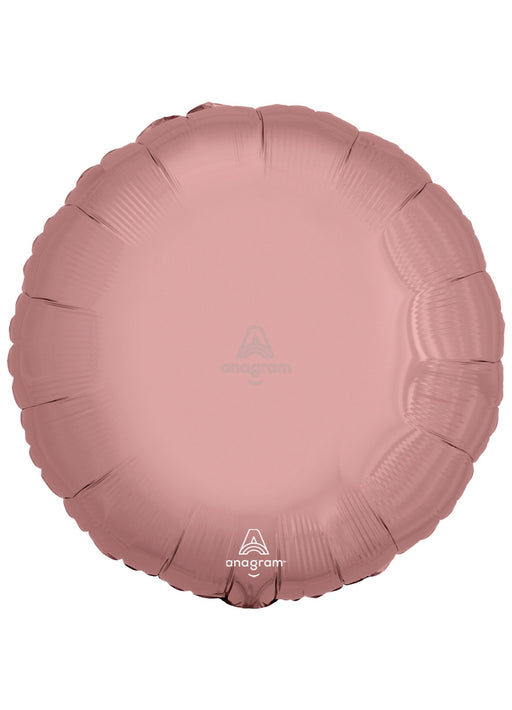 Metallic rose gold round shaped 17" foil balloon. Supplied deflated and suitable for helium inflation only.