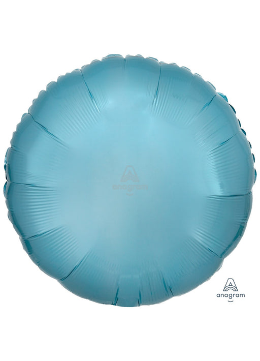 Metallic pastel blue circle shaped 17" foil balloon. Supplied deflated and suitable for helium inflation only.