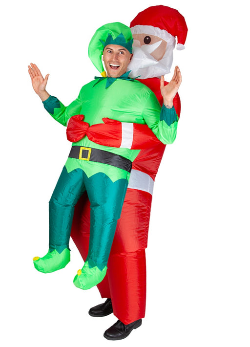 Inflatable Carry Me Santa with elf fancy dress costume consisting of zip up bodysuit with self inflating fan. Please note - Batteries are not inclu...