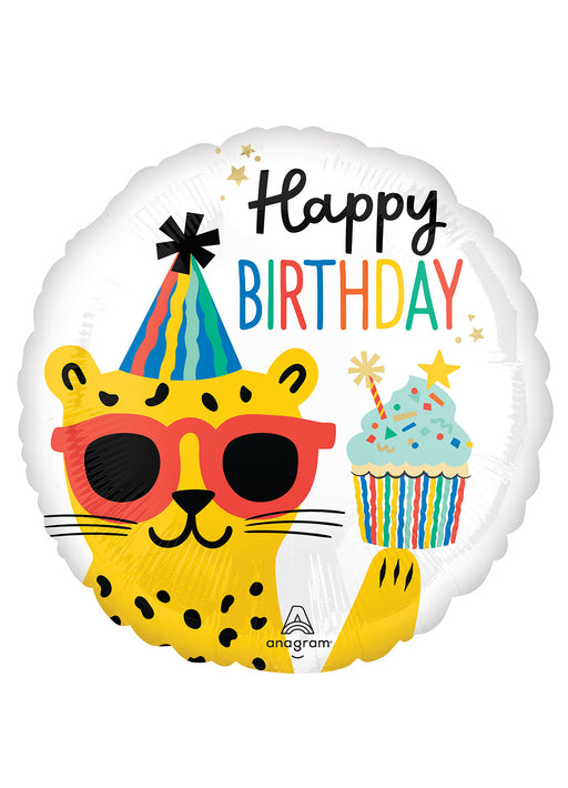 Funny Party Animcal 17 inch round Happy Birthday foil balloon. Click & Collect orders: Balloon supplied inflated with helium. Delivery order...
