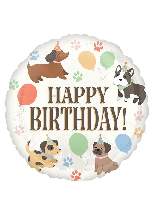 17 inch round Happy Birthday dog themed foil balloon. Click & Collect orders: Balloon supplied inflated with helium. Delivery orders: Balloo...