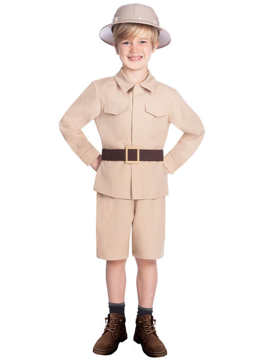 Children's safari or jungle explorer themed beige fancy dress outfit consisting of elasticated shorts, long sleeved top and brown belt. Please note...