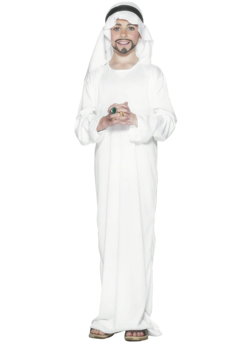 Child's Arabian costume consisting of long white robe and matching headpiece with black band. Size Age Height Medium 7-9 years 130-143cm L...