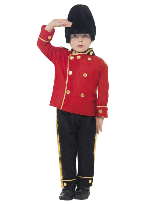 Stand to attention in the Busby Guard costume child. Outfit comes complete with trousers with gold trim, red jacket with fake gold buttons and head...