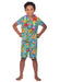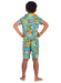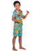 This complete Hawaiian children's costume comes with blue patterned Luau style shirt with matching shorts and a flower lei necklace. Available in 4 sizes.