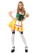 Yellow and green Oktoberfest short dress with faux black ribbon corset and white apron.