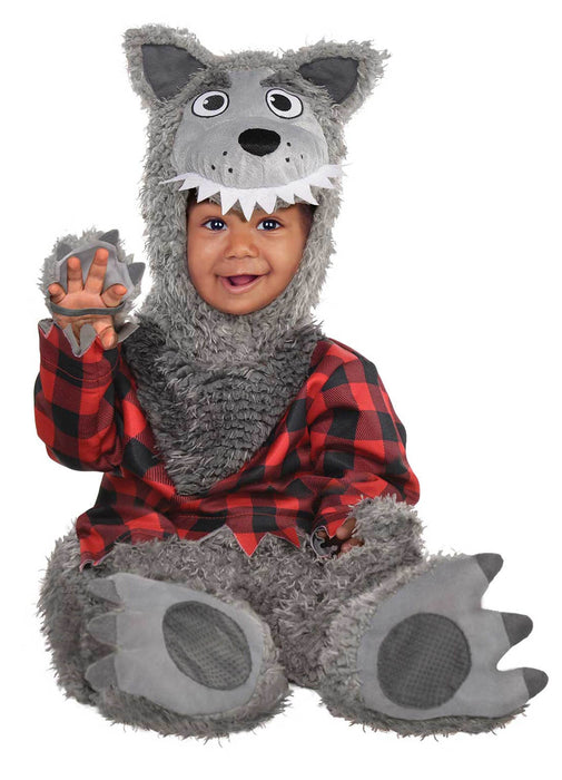 From new born to 2 years old this baby werewolf Halloween has got 100% cute written all over it! Comes with a jumpsuit with checkered top and grey furry bottoms, booties and hood piece.