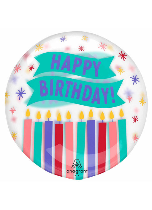 Multi-coloured transparent Happy Birthday round Clearz balloon with candles design measuring approximately 18-22 inches when inflated. Click &...