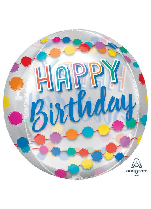 Colourful Happy Birthday orbz balloon. Balloon is as round as a beach ball when inflated measuring approximately 38cm (15 inches). Click & C...