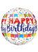 Large round Happy Birthday banner and streamer design Orbz balloon measuring approx. 38 cm (15 in) when inflated.
