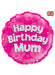 Pink Happy Birthday Mum holographic standard round foil balloon measuring 18" (45.7 cm) when inflated. Made in UK.