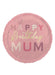 Happy Birthday Mum standard round foil balloon measuring 18" (45.7 cm) when inflated. Made in UK.