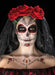Day of the Dead themed face tattoo transfer kit consisting of tattoo transfers, black and white face paint pallet, black crayon & make up applicators.