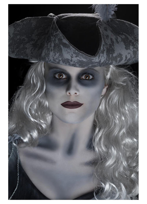 Create extra effect with your Halloween costume this year using our ghost ship make up kit which consists of 1 tube of cream base make up, 1 black crayon, 2 small sponges, 1 paint applicator and pallet of 6 coloured face paints (white, black, brown, grey, green & red).