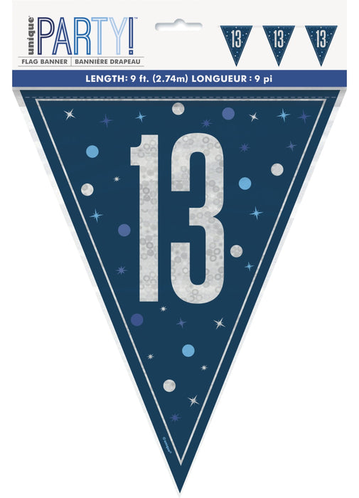 Click to expand Tap to zoom Blue Glitz 13th Birthday Flag Banner Save £-1.99 £1.99 SKU U81992 1 2 3 4 5 6 7 8 9 10+ Quantity Quantity ADD TO BASKET 2.74 m/9 ft long Blue Glitz age 13 birthday plastic bunting.