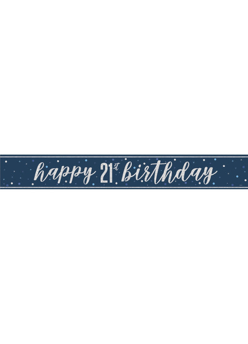 9ft / 2.74m long age 21 Birthday Blue Glitz banner printed one side.