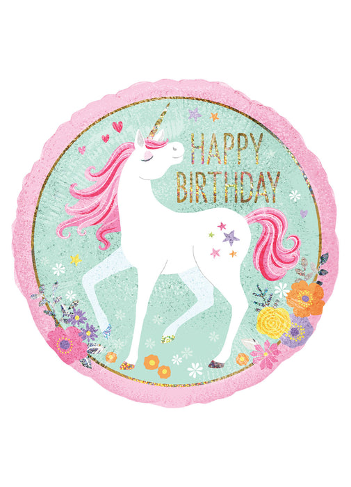 2-sided design unicorn themed Happy Birthday 18" foil balloon.
