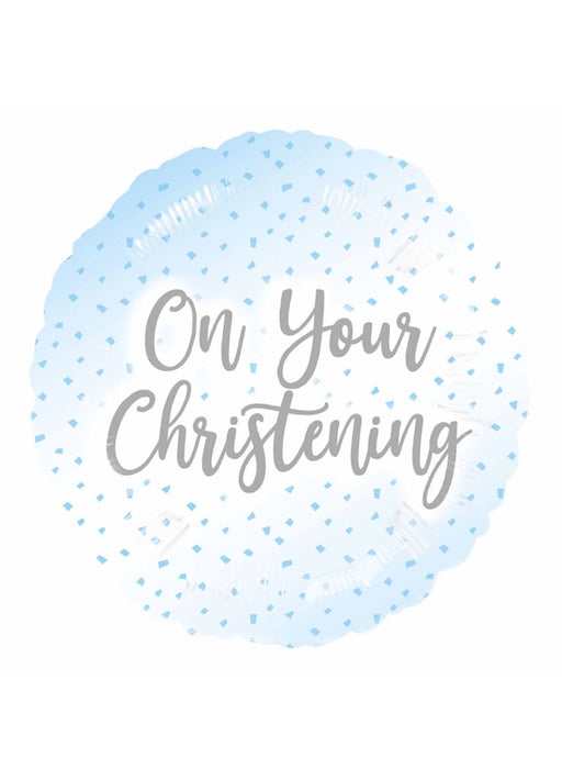 White, blue and silver On Your Christening round 17" foil balloon. Click & Collect orders: Balloon supplied inflated with helium. Delivery o...