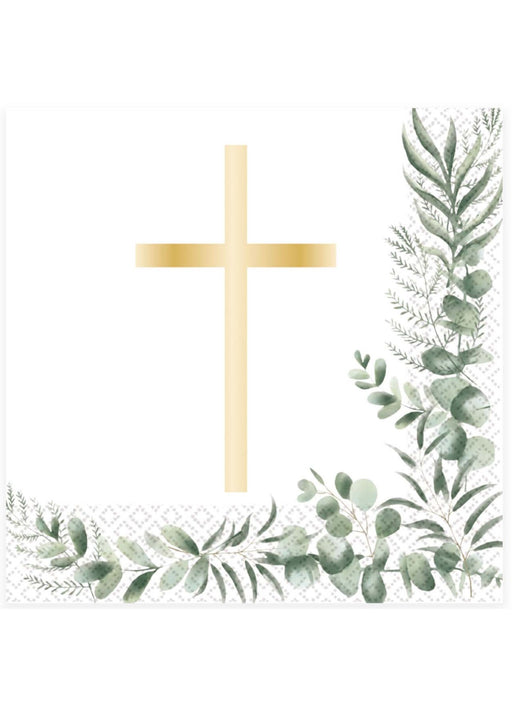 Pack of 20 eco friendly 3 ply gold cross botanical design lunch napkins ideal for either Christening or First Communion.
