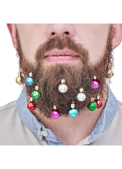 Pack of 12 coloured Christmas bauble decorations with beard clips.