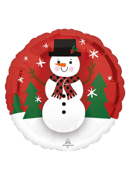 Traditional snowman character Christmas foil balloon measuring 17" when inflated.