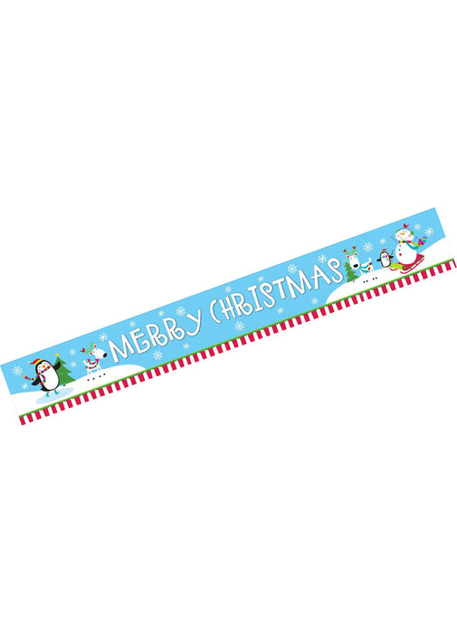 Joyful Snowman themed foil banner with Merry Christmas wording measuring 4.5m in length.