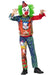Printed horror clown Halloween children's costume with trousers, top with collar and face mask with green side hair.