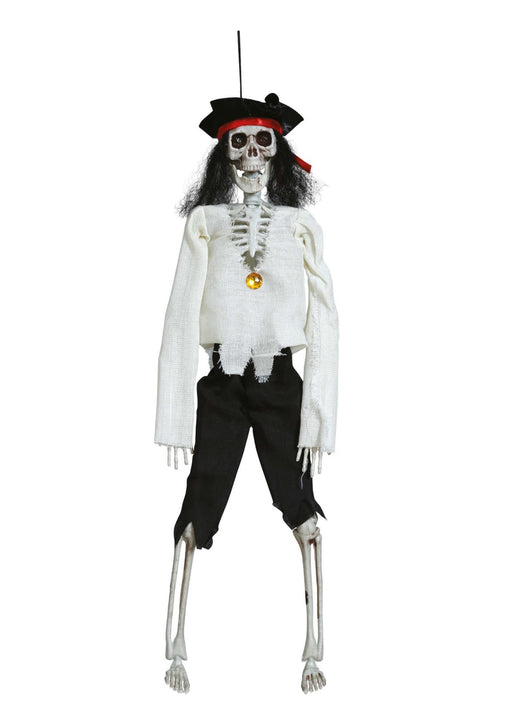 Pirate skeleton hanging Halloween decoration measuring approx. 45 cm.