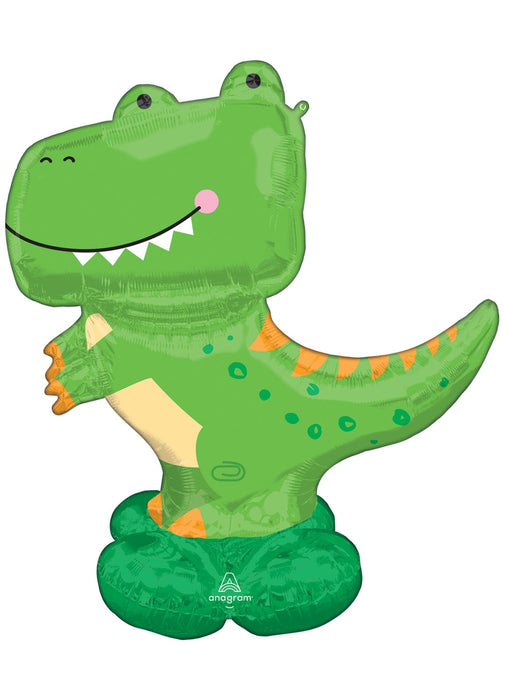 Large friendly T-Rex shaped decorative balloon measuring 137 cm (54 in) tall which would make a great centrepiece at any dinosaur children's party.