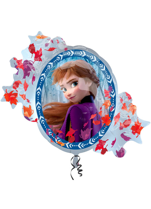 Disney Frozen 2 large double sided design supershape balloon measuring 30 x 26 inches (76 cm x 66 cm) when inflated with Elsa and Anna characters.