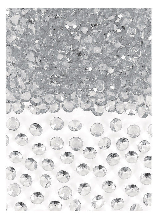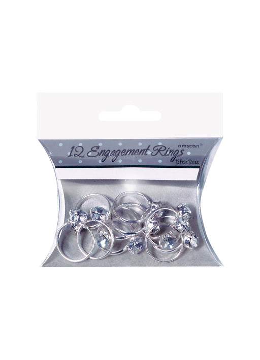 Pack of 12 silver engagement ring table confetti with attached diamond decoration.