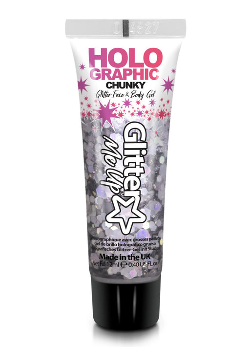 12ml of holographic chunky glitter face and body gel. Application couldn’t be easier - the pre-mixed formula means no glue is needed. Simply squeez...