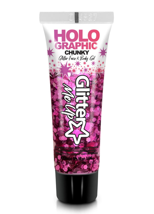 12ml of holographic chunky glitter face and body gel in pink. Application couldn’t be easier - the pre-mixed formula means no glue is needed. Simpl...