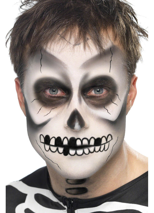 Skeleton make-up kit with step-by-step pictured instructions on how to create the look. Pack contains: Sponge Black and white facepaint pot Black c...