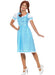 Kansas country girl costume in the style of Dorothy consisting of three quarter length gingham dress and pair of matching hair bows.
