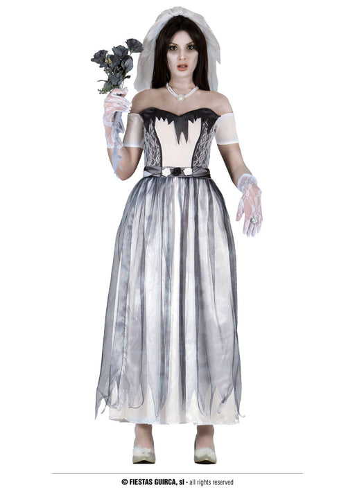 Dead bride Halloween fancy dress costume consisting of long dress with veil headband. Please note - colour of costume differ to picture. Dress has ...