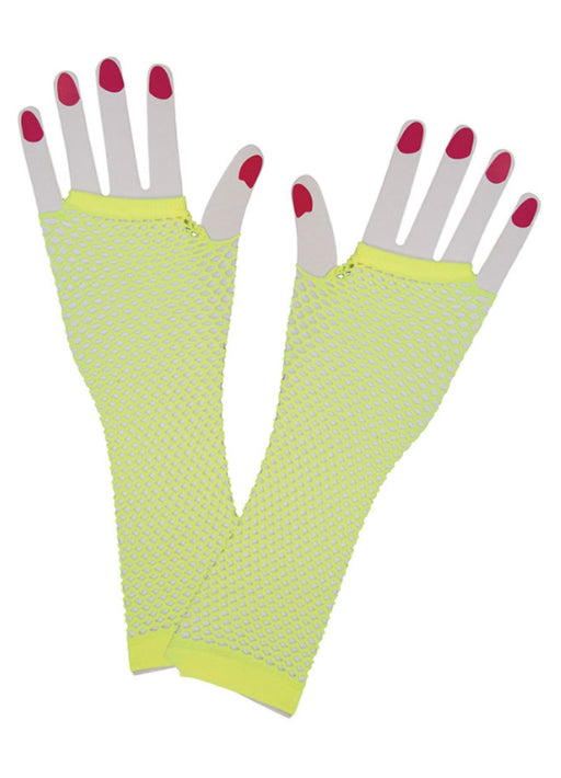 Complete your 80's look with these net gloves in neon yellow. One size fits most.