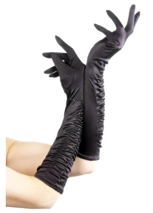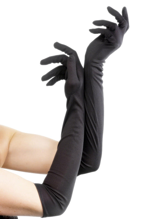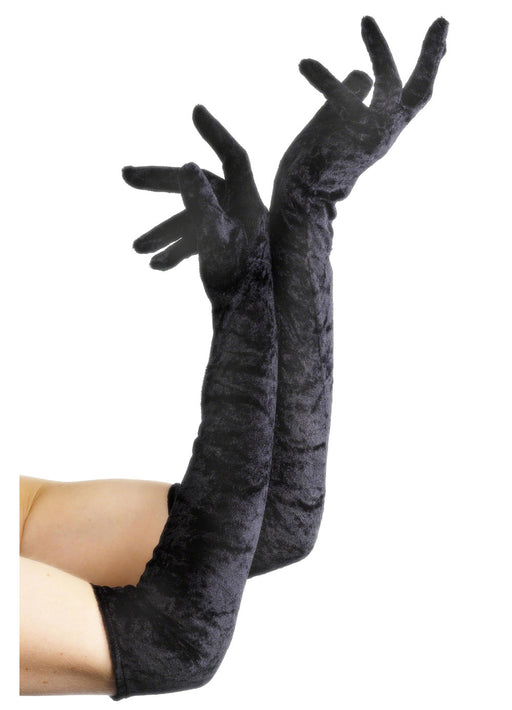 These quality long black velveteen gloves are a great costume accessory.
