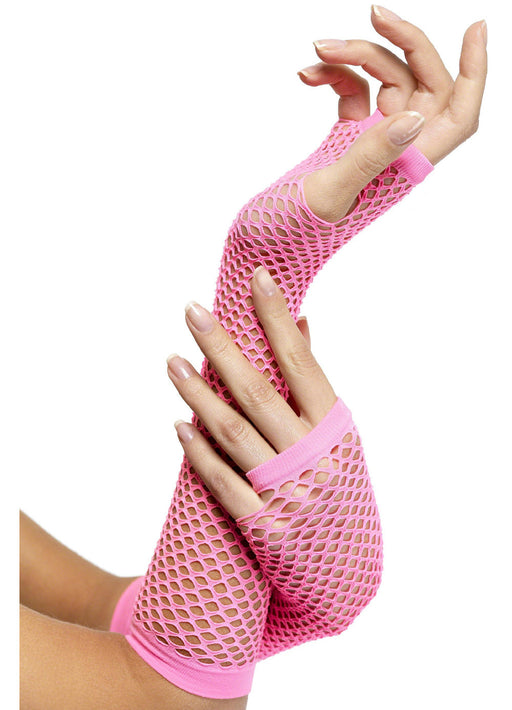 Complete your 80's look with these net gloves in bright pink. One size fits most.