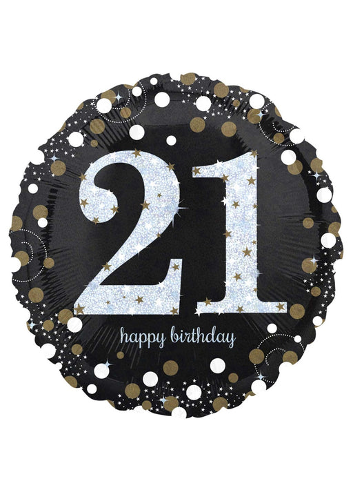 Gold Sparkle 21st birthday holographic foil balloon decorated with spots. Click & Collect orders: Balloon supplied inflated with helium. Deli...
