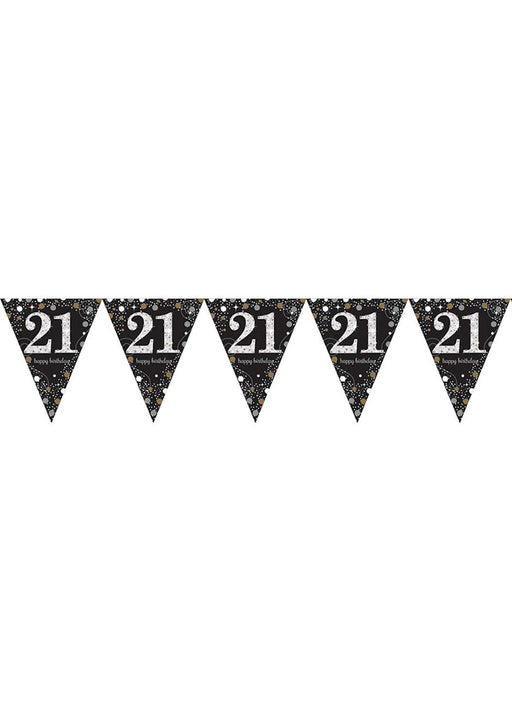 21st happy birthday black, gold and silver flag bunting banner measuring 4 metres (13ft) long.