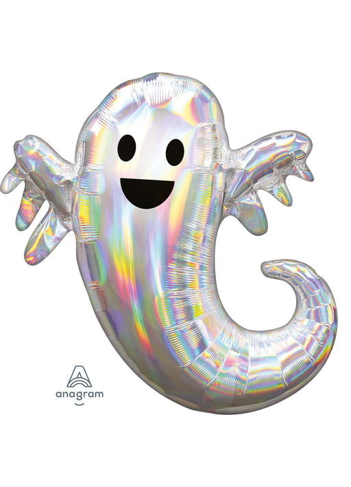 Halloween themed ghost iridescent balloon measuring 25 x 28 inches (63 cm x 71 cm) when inflated. Click & Collect orders: Balloon supplied in...