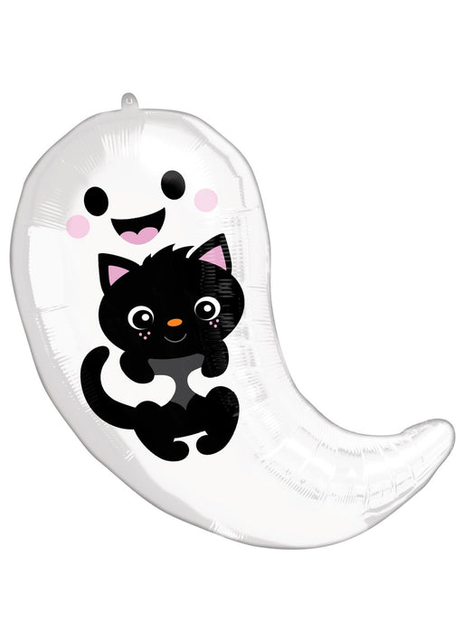 Ghost shaped Halloween themed foil balloon measuring 48 cm (19 in) tall when inflated. Click & Collect orders: Balloon supplied inflated with...