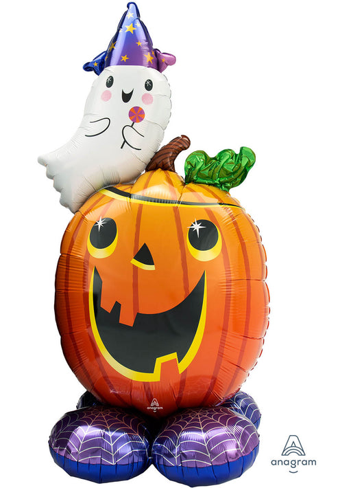 Huge decorative Halloween themed pumpkin and ghost balloon measuring 142 cm (56 in) tall. Would make a great feature at any Halloween event. Ballo...