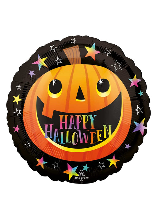 Happy Halloween pumpkin design 17 inch round foil balloon. Click & Collect orders: Balloon supplied inflated with helium. Delivery orders: Ba...