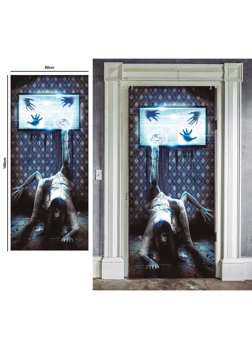 Halloween Scary TV horror film door decoration measuring 180 cm x 80 cm.