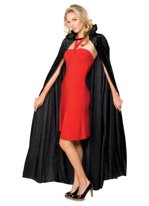 Halloween black crushed velvet cape with foam-filled collar. One size.